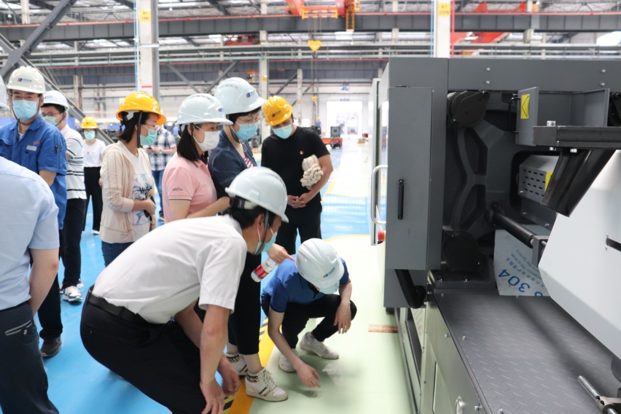 為體驗下車間,在申達公司黨委書記葉如清的陪同下先后參觀了金加工車間、涂裝車間和裝配車間。
